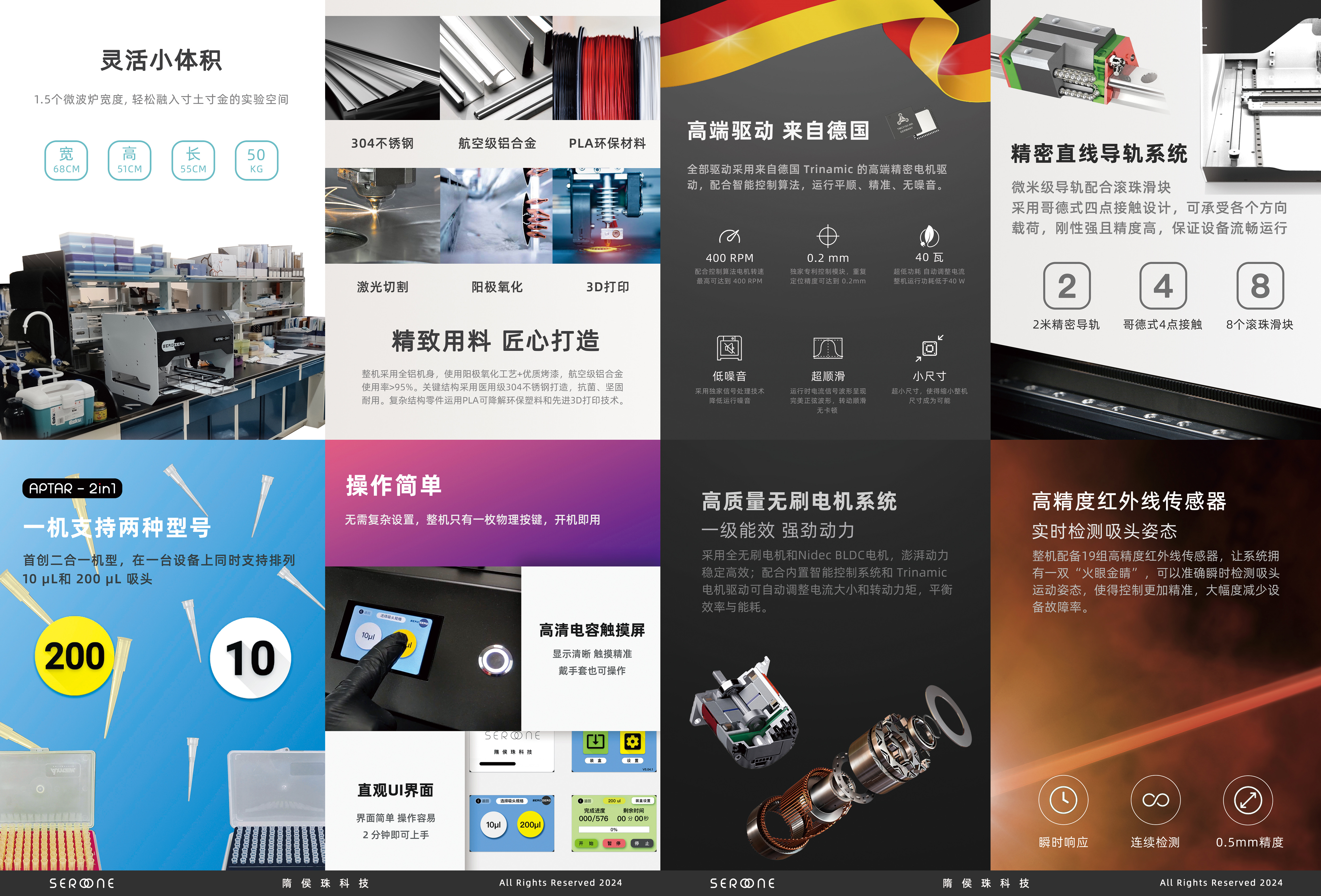 1. ✳二合一機型;在不更換硬件零件的情況下,一臺設(shè)備可同時支持排列兩種規(guī)格吸頭,標準機型為一機同時支持10ul和200ul吸頭;可支持匹配進口、國產(chǎn)等多種品牌吸頭,支持10ul/20ul/200ul/250ul/300ul/350ul吸頭中任意兩種規(guī)格定制。